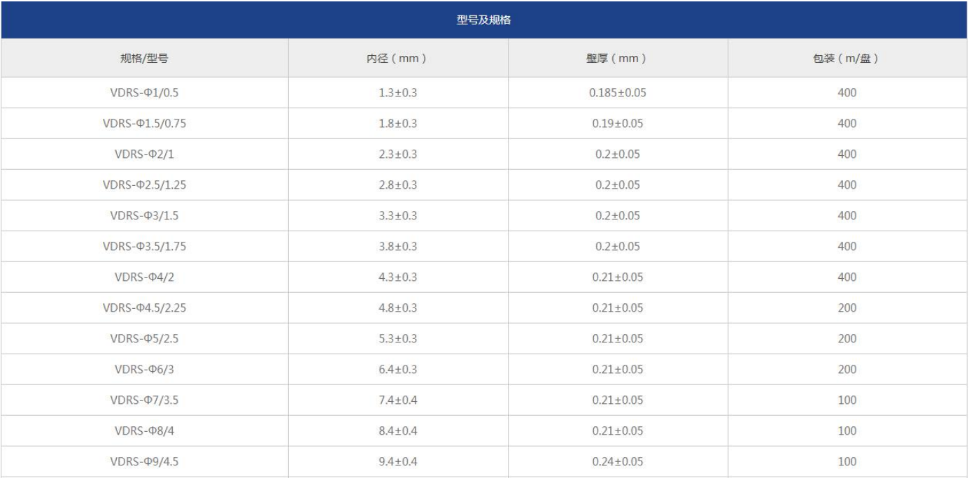 收縮比例:2:1 3:1;收縮溫度:85℃~125℃;工作溫度:-55℃~125℃。